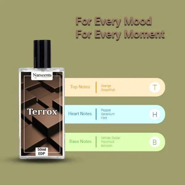Terrox is a fresh and woody perfume for men, inspired by Terre d’Hermès. With 40% concentration, it offers a long-lasting, strong masculine scent that feels clean, classy, and powerful.